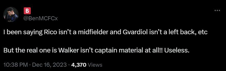 "We are winning nothing with Kyle Walker as captain. He shouldn’t even be in starting line up."