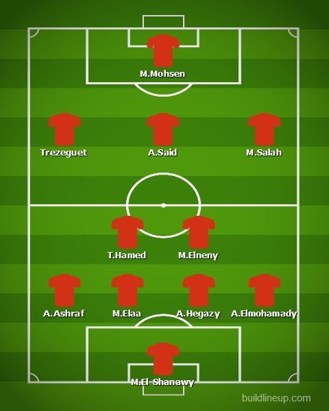 Mohamed Salah is set to occupy the right forward's role with Abdallah Said and Mahmoud Hasan operating as a number ten and left winger respectively. Arsenal's Mohamed Eleny and Tarek Hamed will form midfield's engine.