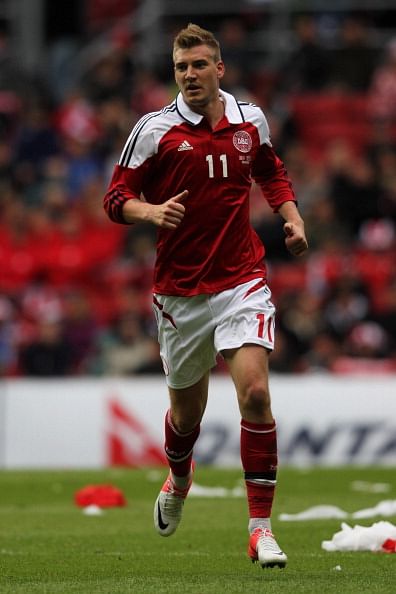 COPENHAGEN, DENMARK – JUNE 02: Nicklas Bendtner of Denmark in action during the International Friendly between Denmark and Australia at Parken Stadium on June 2, 2012 in Copenhagen, Denmark. (Photo by Dean Mouhtaropoulos/Getty Images)