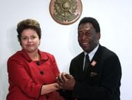 President Dilma Rousseff greets Pele during a meeting at the Planalto Palace in Brasilia