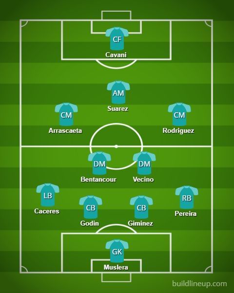 Oscar Tabarez is expected to play the same eleven that started in the practice game against Uzbekistan except for Nandez who will make way for Rodriguez in the 4-2-3-1 setup.
