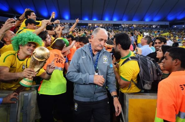 Luiz Felipe Scolari head coach of Brazil is congratulated by fans after the FIFA Confederations Cup Brazil 2013 Final match between Brazil and Spain at Maracana on June 30, 2013 in Rio de Janeiro, Brazil. (Getty Images)