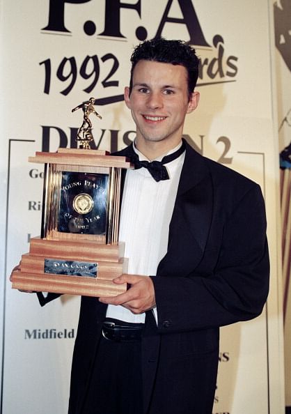 As Manchester United won their first League title in 26 years, Ryan Giggs collected his second individual honor, the PFA Young Player of the Year Award for the 1992/93 season as well as becoming only the third teenager to score in the Premier League.