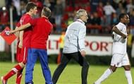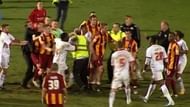 However, as the English players celebrated, a series of objects were thrown on the field as the crowd expressed their frustration. The final whistle was blown almost immediately but players from both sides clashed, and it was not long before coaches and even officials became involved.