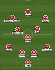 Substitutes: Keylor Navas, Chris Smalling, Nicolas Gaitan, Kevin De Bruyne, Neymar, Hulk, Artem Dzyuba