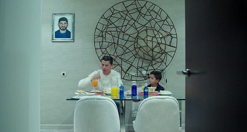 Ronaldo's father José Dinis Aveiro is mentioned on several occasions in the movie, but what stood out was the portrait of his father. It sits by the wall right behind where Ronaldo and his son have their meal to start the day. It is like a constant reminder to Ronaldo that he has to be a better father for his son than his own father ever was.