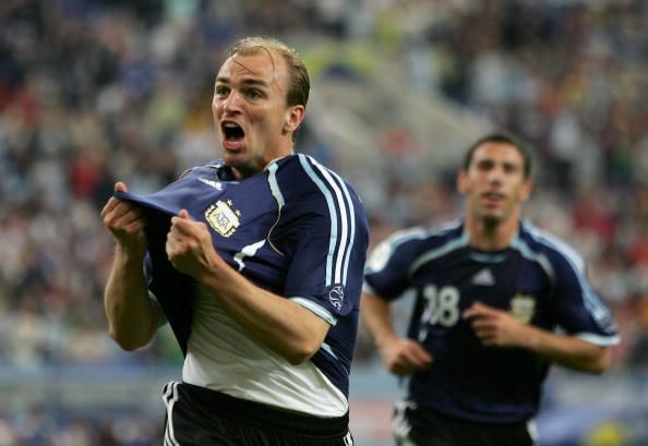 In the second half of extra-time, this epic match saw a touch of genius from Maxi Rodriguez. Juan Sorin hit a long aerial cross pass to Rodriguez, who jumped and chested the ball to score a left footed volley from the right flank into the opponents goal.