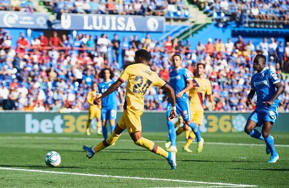 Barcelona were under great pressure to get the three points, and it showed in the early stages. Getafe pressed from the front and it put Barcelona in some tough situations. The likes of Sergio Busquets and Arthur were caught in some difficult positions.