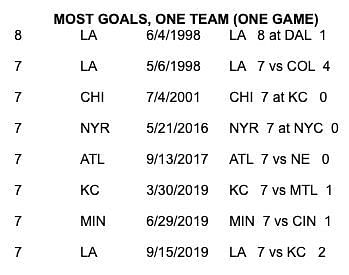 It also marked the third time this season where a team has netted seven goals in a game – the most in a single year in MLS history. The only other season where it happened even twice was in 1998, where the Galaxy did it 29 days apart, including their record performance.