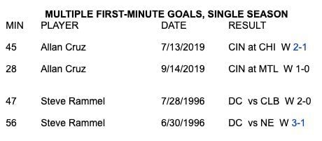 Cruz became just the second player in Major League Soccer history to score two goals in the opening minute of games in the same season – and the first to do it in 23 seasons. The only player to perform the feat was Steve Rammel, who netted a pair of first-minute goals for D.C. United in the league’s inaugural season of 1996.
