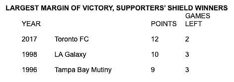 If LAFC can claim the honor, which will certainly require a victory vs. Toronto FC at Banc of California Stadium on Saturday evening, it will equal the earliest a team has won the Supporters’ Shield in MLS history. Two teams – the Tampa Bay Mutiny in 1996, and the LA Galaxy in 1998 – each claimed the league’s best overall record will three games still to play.