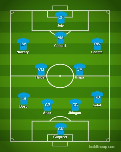India Probable XI: Gurpreet; Kotal, Jhingan, Anas, Bose; Thapa, Haldar; Udanta, Sunil Narzary; Jeje