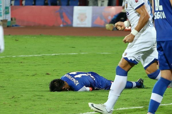 At 1-1, Dimas Delgado was down injured and had to be substituted at the exact time Chennaiyin had a corner kick. The match officials only allowed the substitution to take place after the set-piece and down to 10 men, Bengaluru conceded a second as Mailson Alves made it 2-1.