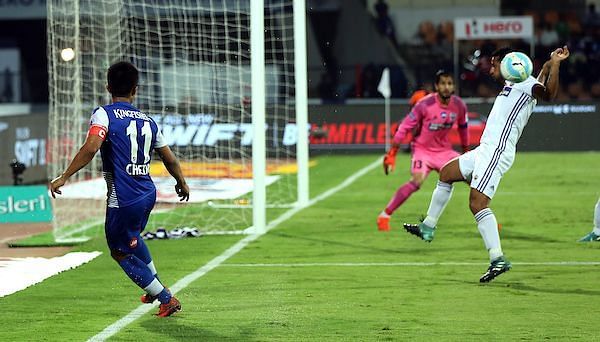 Sunil Chhetri's cross struck Sahni's hand, however, only a corner was forthcoming for the home side and penalty appeals fell on deaf ears. The referring in this edition of ISL has been under the spotlight and this incident won't help the cause either.