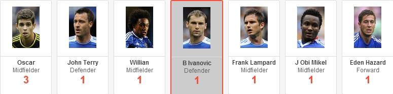The third member of the trio, Demba Ba, managed to notch an assist against Norwich and has probably looked more likely to score out Eto’o andTorres. His 60% shot accuracy trumps his rivals for the spot and he has managed one more shot than Torres in three less appearances.
