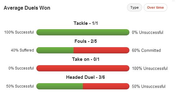 However, the Spaniard has shown some decent link-up play, making six key passes but the sending off at White Hart Lane has sent his Performance Score (-33) spiralling down into negative numbers.