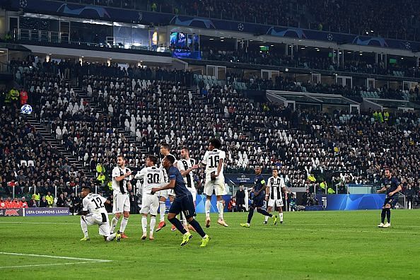 Pogba was fouled on the edge of the box by Matuidi and Mata stepped up to strike. His effort was a brilliant one, lifting it up and over the wall towards Wojciech Szczesny's far post and watching it swerve in within a flash. 1-1, it was game on with time ticking down and Juventus struggling from their sudden change in formation and personnel - which only served to invite more pressure on their goal.