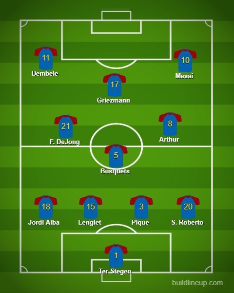 Another formation which is highly erratic and improbable would see Messi lineup directly behind Griezmann in what would be 4-4-1-1, with Ousmane Dembele out wide on the right, while Coutinho/Malcom occupies the left midfield spot.