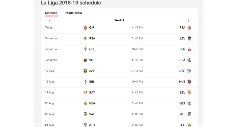 Here is the schedule for the first matchweek of La Liga 2018/19: