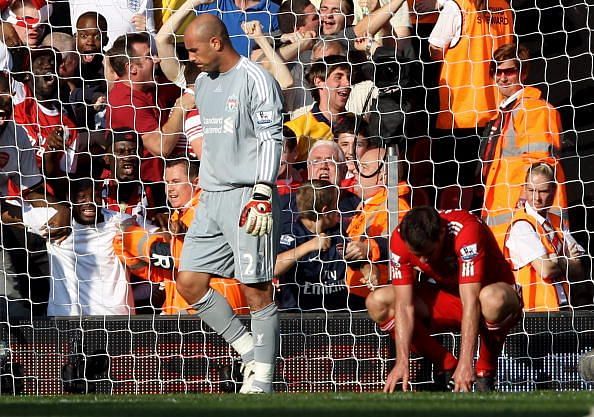 Liverpool hosted Arsenal in their opening day fixture in 2010 and took the lead with David N'Gog in the 46th minute who was assisted by Javier Mascherano. A goal keeping blunder in the form of an own goal by Pepe Reina gifted Arsenal the equalizer in the 90th.