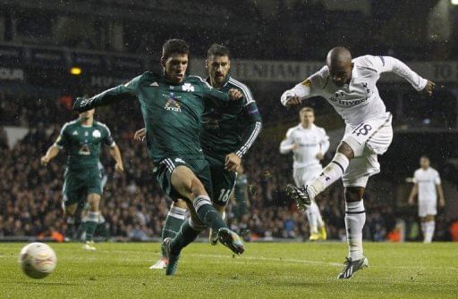 Emmanuel Adebayor gave Spurs a 29th-minute lead at White Hart Lane, the Togo striker running into Clint Dempsey’s deft pass to slot the ball side-footed past Panathinaikos keeper Orestis Karnezis.