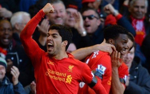Liverpool striker Luis Suarez celebrates his late equaliser against Chelsea on April 21, 2013. Suarez was quick to apologise to Ivanovic via his Twitter account.