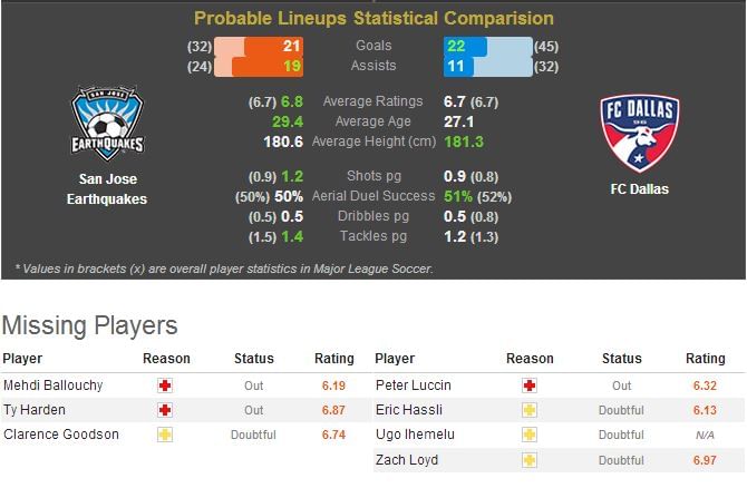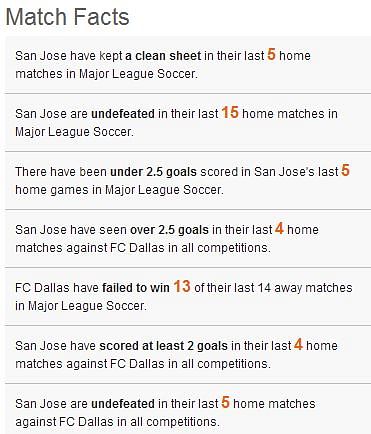 - FC Dallas come into this game on the back of a shock 2-0 win over the Seattle Sounders and could prove tough opposition for a San Jose side keen to push the playoff race right to the wire.