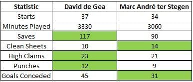 Goalkeeper: David De Gea vs Marc Andre ter Stegen