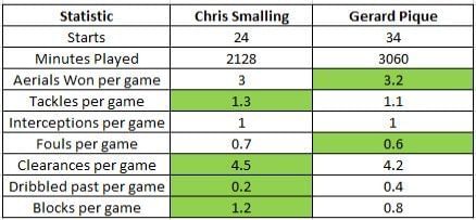 Centre Back 1: Chris Smalling vs Gerard Pique
