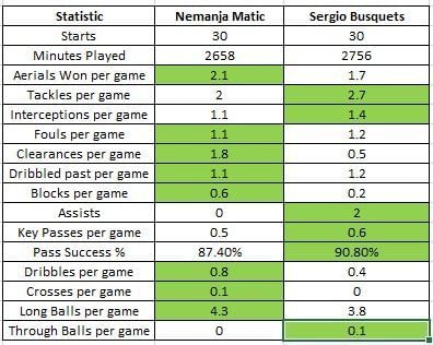 Defensive Midfielder 1: Nemanja Matic vs Sergio Busquets