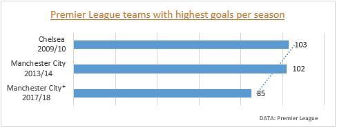 Manchester City have been among the top goal-scoring teams in the past decade, but the all-time Premiere League record for goals scored in a season is held by Chelsea’s title winning team from the 2009-10 season.