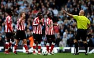 MANCHESTER, UNITED KINGDOM – APRIL 03: Sunderland players protest to Referee Howard Webb during the Barclays Premier League match between Manchester City and Sunderland at the City of Manchester Stadium on April 3, 2011 in Manchester, England.