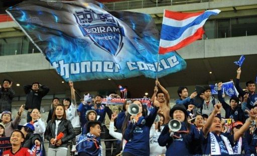 Buriram United supporters celebrate as the team becomes the first Thai side to reach the AFC Champions League last 16. They drew 2-2 with South Korea’s FC Seoul in Seoul.
