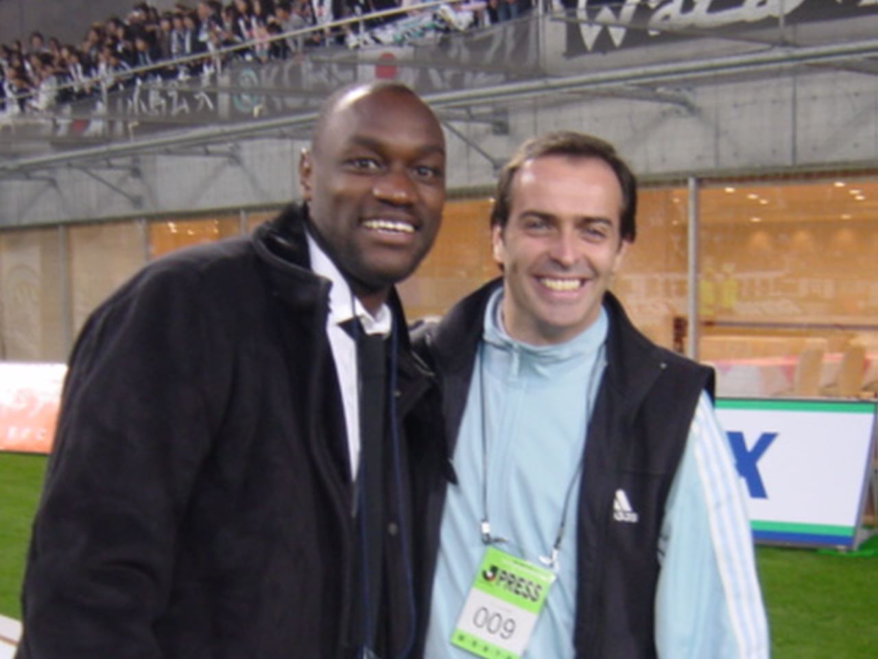 Alan Gibson (R) with Patrick M’Boma (L), former Cameroonian striker who played for Gamba Osaka and Tokyo Verdy in J. League