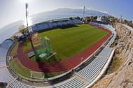The Kantrida football stadium is an exceptionally located scenic venue, with steep cliffs on one side as it is built into the mountain terrain. The opposite end overlooks the Adriatic Sea in Croatia.