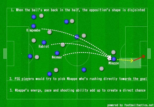 There is an upside though. If the rivals come out from the first line of pressing where PSG put in as many numbers as possible, there will be open spaces to run into and can leave PSG running for the game.