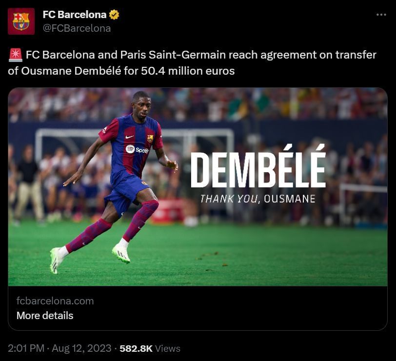 Barcelona have announced the sale of French attacker Ousmane Dembele to Ligue 1 giants Paris Saint-Germain (PSG) for €50.4 million.