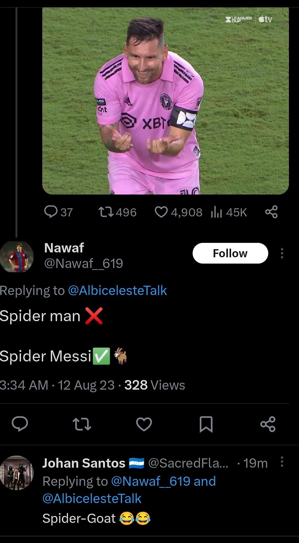 Lionel Messi donned the mantle of yet another superhero with his Spider-Man-inspired celebration after scoring for Inter Miami in their game against Charlotte. His quirky celebration has taken Twitter by storm, with many fans reacting hilariously.