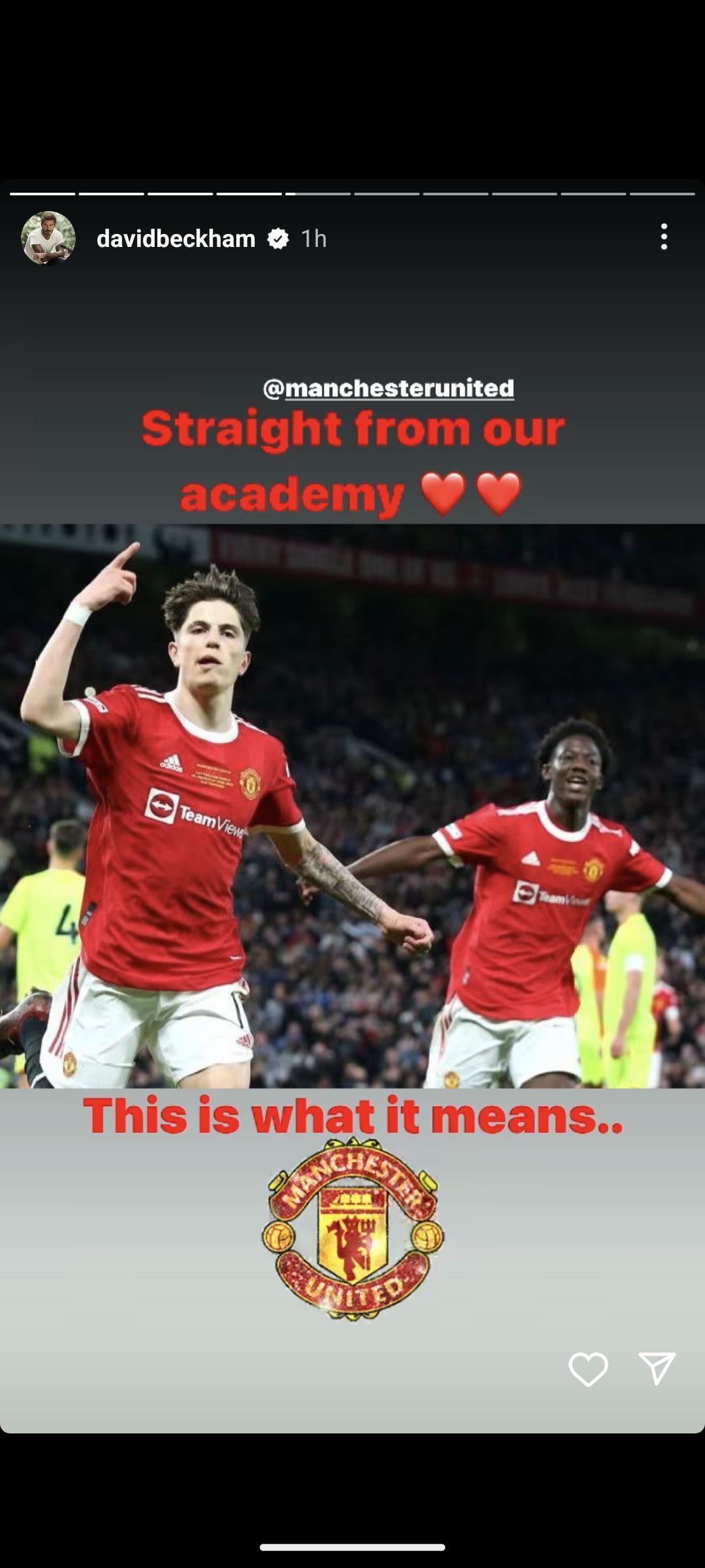 The Red Devils had two teenage academy graduates - Garnacho and Mainoo - to thank as they denied their rivals a win. David Beckham shared his pleasure at their displays on Instagram. The Inter Miami co-owner posted pictures of both teenagers from the match and from their academy days, inserting captions to claim Manchester is Red.