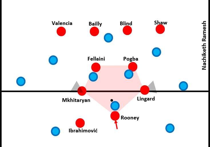 Mourinho played to his strengths by making Manchester United stay narrow and compact. However, due to the positional rotation of the Manchester City players in the midfield and some man-orientation by United’s central midfielders and wide players, while defending, City usually found gaps in between United’s defensive shape.