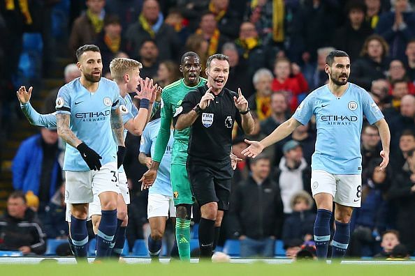 Watford held firm for 45 minutes and just like Bournemouth did, appeared dead set on ruining City's title hopes to earn a share of the spoils - but aided by a dubious officiating decision, City took the lead just 40 seconds after the restart.