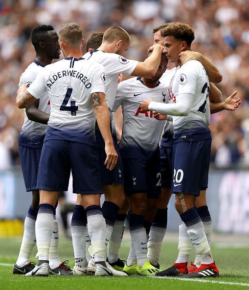 Tottenham Hotspur XI: Hugo Lloris, Kieran Trippier, Jan Vertonghen, Toby Alderweireld, Davinson Sanchez, Eric Dier, Ben Davies, Deli Alli, Christen Eriksen, Harry Kane, Lucas Moura