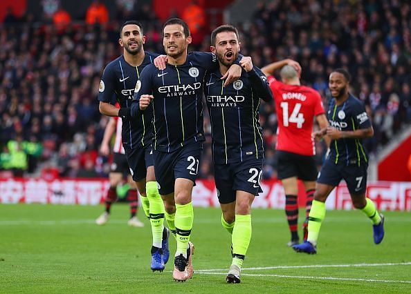 Goals from David Silva, Sergio Aguero and a James Ward-Prowse own goal proved enough for defending champions Manchester City to earn a hard-fought win against Southampton at St. Mary's, closing the gap on leaders Liverpool back to seven points after their emphatic 5-1 victory over Arsenal on Saturday evening.