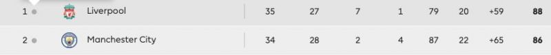 Manchester City and Liverpool are involved in a never before seen tussle for the Premier League. The fact one of the teams can get 97 points and still finish runners-up is unheard of, and that is where Liverpool find themselves. Manchester City completely decimated the league last season and are well on the way to repeat the same. But Liverpool had other ideas and have stuck with the most expensive squad in the league. The fact that the top 2 teams are 21 and 19 points respectively ahead of the rest shows the disparity among the teams. It also shows that if not for Liverpool, City would most likely have repeated their last season heroics.