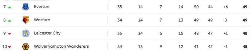 Watford, Everton, Leicester City, and Wolverhampton Wanderers are all within striking distance of finishing 7th.