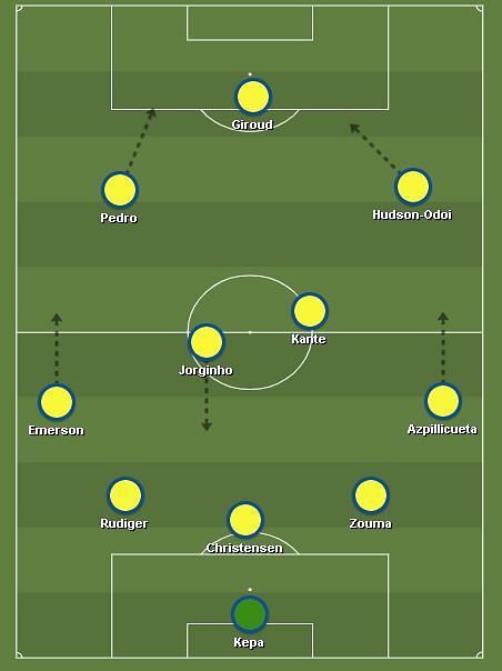 This formation offers Chelsea the chance to have more defensive-minded players on the pitch, as it seeks to plug holes at the back. Chelsea could use this tactic in a counter-attacking manner, with the intention of seeing out games or as a starting system against the likes of Manchester City and Liverpool at their grounds.