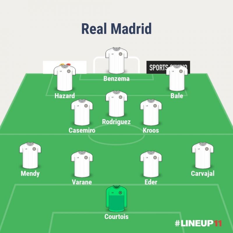 Predicted XI: Thibaut Courtois; Dani Carvajal, Eder Militao, Raphael Varane, Ferland Mendy; Casemiro, Toni Kroos, James Rodriguez; Eden Hazard, Karim Benzema, Gareth Bale