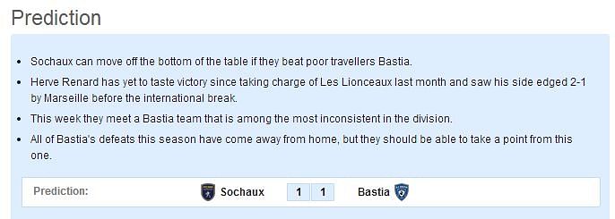 Sochaux can move off the bottom of the table if they beat poor travellers Bastia.