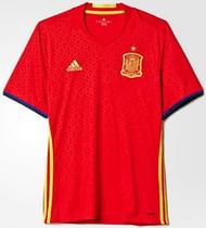 The all red Spanish kit that was used in the 2014 World Cup is replaced this time by Adidas and combines the red shirt with blue shorts for the tournament in France. The Euro 2016 kit is similar to the traditional Spanish kit that was used until the 1994 World Cup. The shorts are of royal blue colour and the kit is complete with dark navy socks. The yellow stripes on the side of the shirt are also present on the side of the shorts.