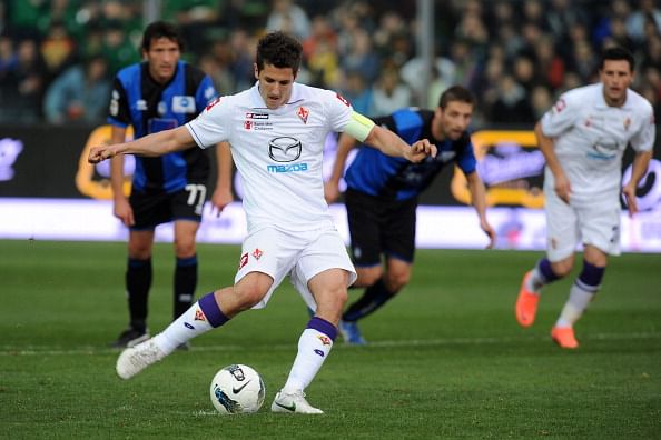 BERGAMO, ITALY – APRIL 29: Stevan Jovetic of ACF Fiorentina misses a penalty-kick during the Serie A match between Atalanta BC and ACF Fiorentina at Stadio Atleti Azzurri d